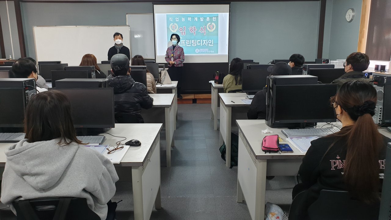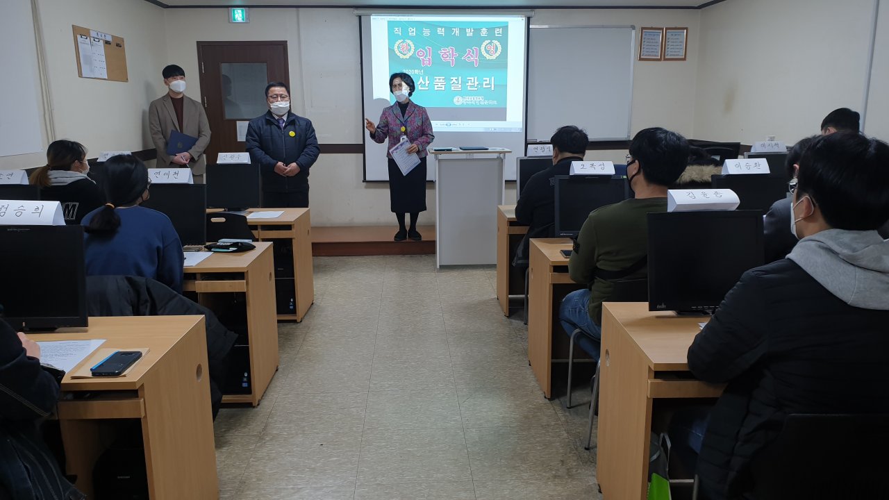 입학식은 각 훈련과정의 강의실에서 전원 마스크 착용을 하고 약식으로 진행하였습니다.