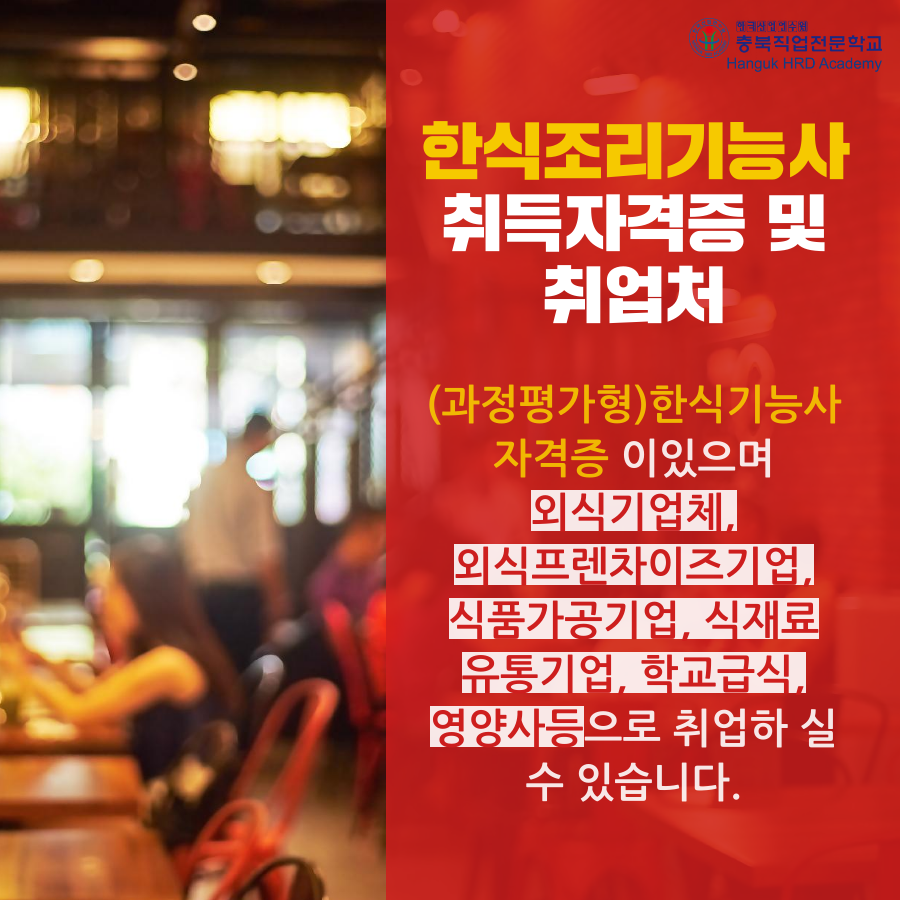과정평가형 한식조리기능사 자격증 전문과정!