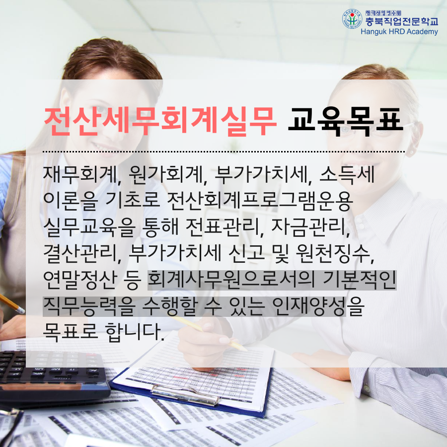• 청주국비지원무료교육 전산세무회계실무 교육생 모집