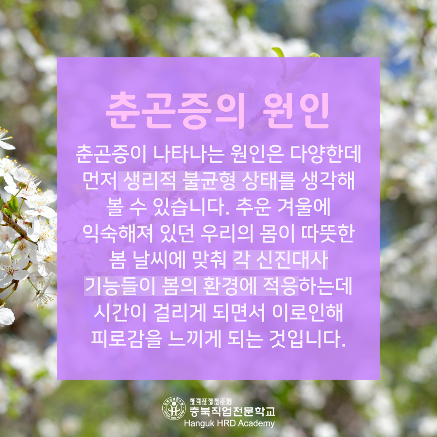 • 청주국비지원무료교육 다가오는 봄, 춘곤증 원인알고 극복하기!